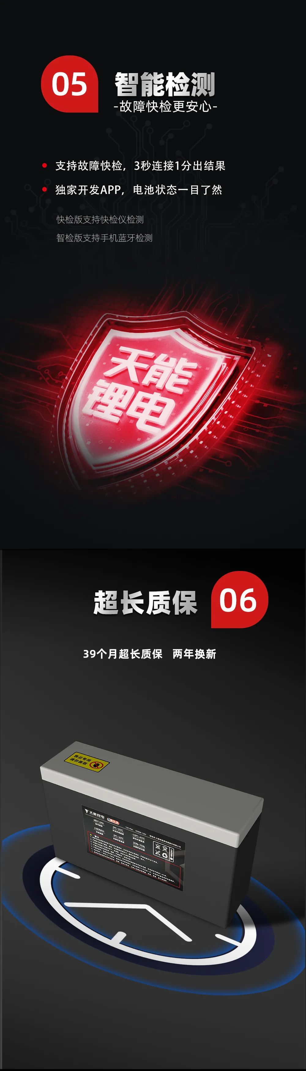 天能锂电在提供安全稳定产品的同时,不断探索为客户提供更长久、更智能、更优质的服务。本次衡科技系列4812模块电池,由工程师团队潜心研发智能保护板BMS系统,快检版支持检测口外接快检测试仪检测,智检版内置蓝牙芯片支持云端检测,检测结果均支持手机APP查看,显示内容包含实时电压、实时电流、实时温度、剩余电量等数据,电池状态一目了然。