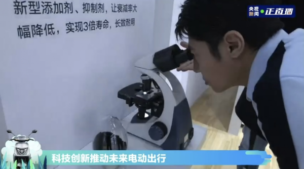 总台央视主持人撒贝宁近距离观察雅迪石墨烯电池原料
